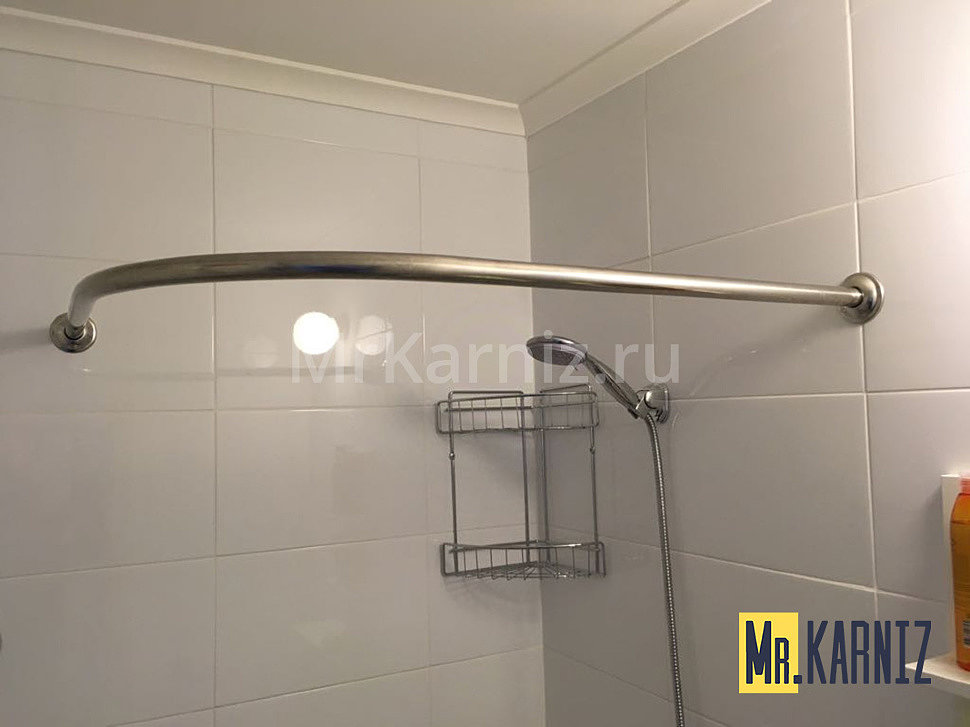 Штанги стандартной формы бывают телескопической или фиксированной длинны. Эти конструкции для душевой наиболее популярны за счет своей незамысловатости и универсальности в креплении. Они упираются двумя концами в противоположные стены, не имеют углов, изгибов.